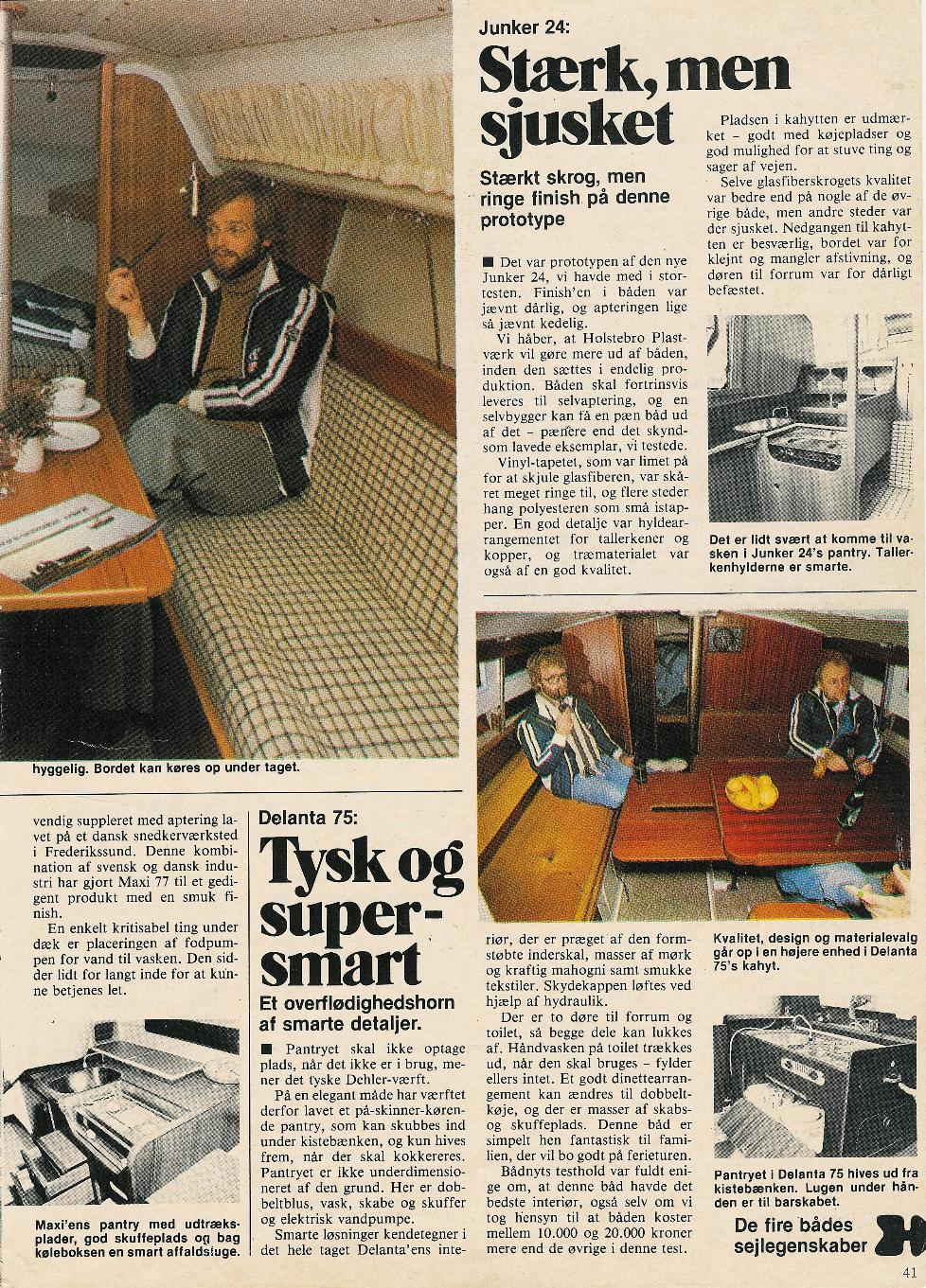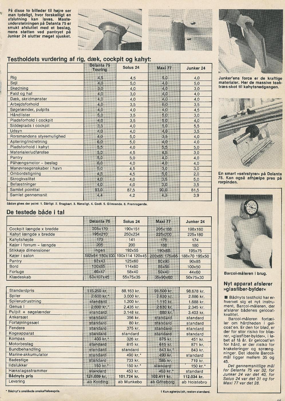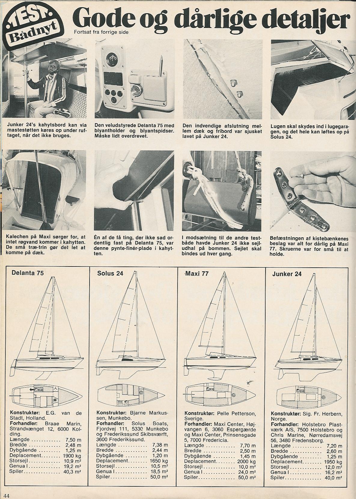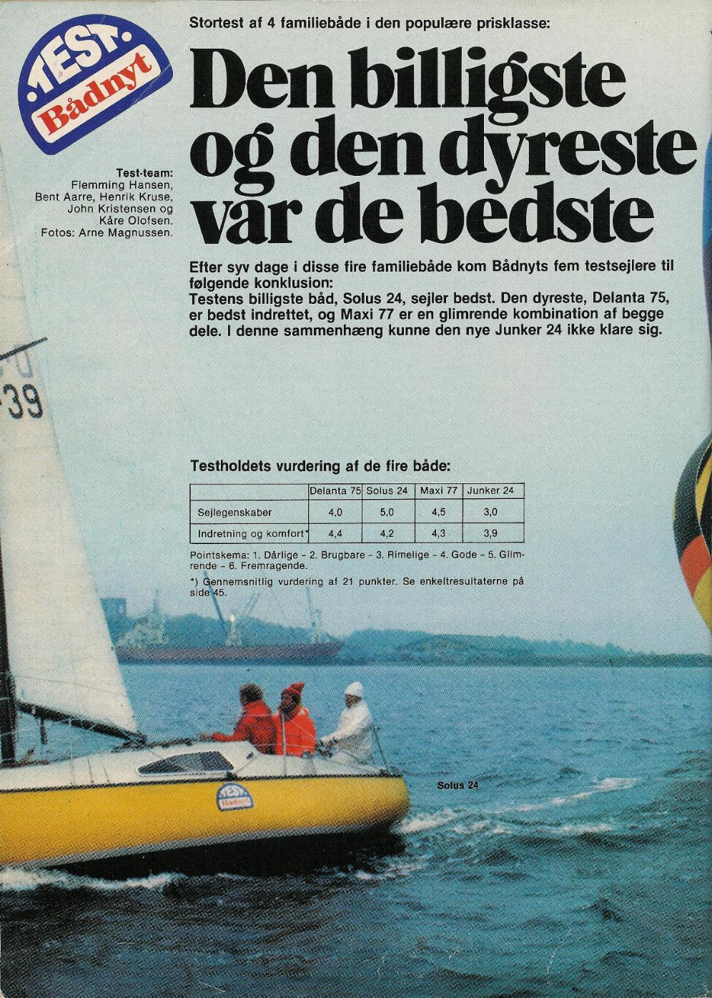 Bådnyt bragte i 1979 en 6 sides artikel der beskrev 4 familiebåde i den populære prisklasse. Testen inkluderede selvfølgelig maxi 77.