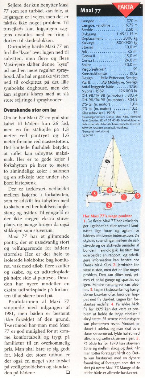 Bådnyt bragte i 1999 en brugtbådstest af Maxi 77.