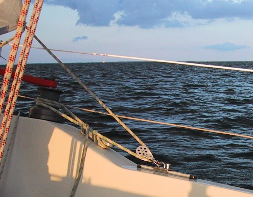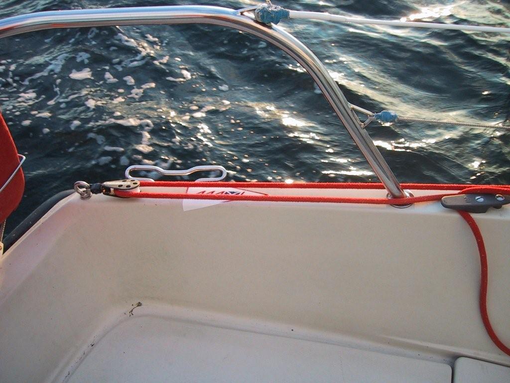 Jeg har lige prøvet gennarken for første gang og på læns smed jeg skødet om fortøjningsklampen bagerst. Jeg tænke om ikke jeg kan have en blok med en sjækel om klampen. Den må da kunne holdet til det..