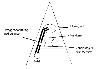 Afløbet er ført igennem skottet til 3-kant køjen og under denne har jeg holdingtank og vandtanken liggende: