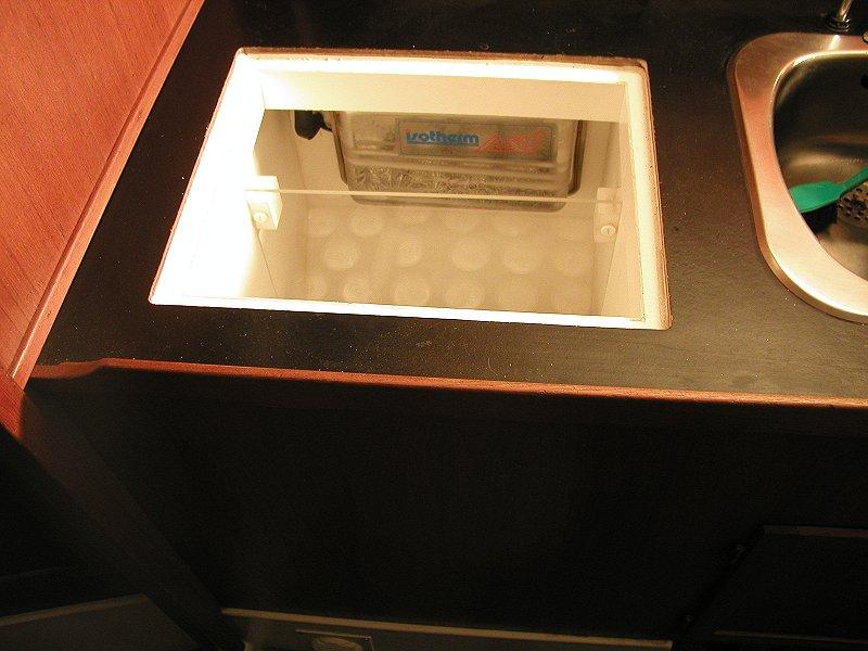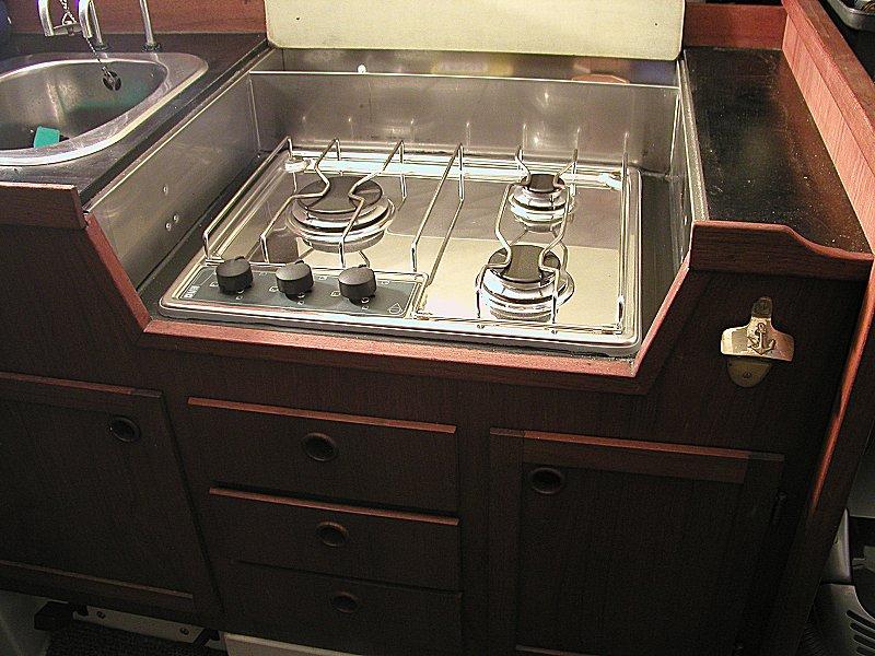 Ps.: Vi er også tilfreds med vores gasblus, som jeg lavede i samme omgang som køleboksen, nu da køkkenelementet alligevel var demonteret.