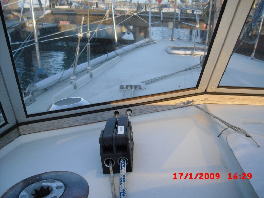 Umiddelbart så vil jeg gerne have storsejlsfaldet og mit bomnedhal med tilbage..En kollega har foreslået at sætte vindspejlet på en ca. 2 cm teakliste hele vejen rundt og bore huller til faldene, men så mener jeg, at der opstår komplikationer med spayhood og cockpitteltet, når det skal monteres.